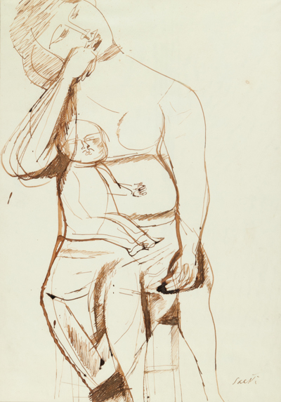 BRUNO SAETTI Maternità china su carta cm. 48 x 33 firmato in basso a destra Maternità ink on paper cm. 48 x 33 signed in the bottom right