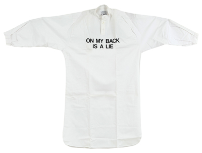 GEORGE BRECHT The paradox-shirt, 1977 camicia con scatola firmata, datata, numerata 5/100 sull'etichetta all'interno della camicia Francesco Conz Editions-Verona, 1989 The paradox-shirt, 1977 shirt with box signed, dated, numbered 5/100 on the label,inside the shirt Francesco Conz Editions-Verona, 1989