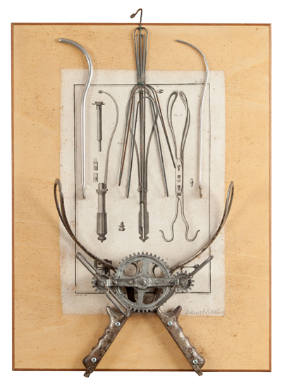 DANIEL SPOERRI Chapitre chirurgie, 1995 pagina di libro e utensili su tavola cm. 61x41x18 firmato e datato in basso a destra autentica dell'artista su fotografia bibliografia Leonardo in azione e poesia, Vinci, museo ideale Leonardo da Vinci 2001 pag 345 Daniel Spoerri Bologna galleria Arte e arte 2005 pag 31 Chapitre chirurgie, 1995 page of a book and utansils on wood cm. 61x41x18 signed and dated in the bottom right photo certificate from the artist literature Leonardo in azione e poesia, Vinci, museo ideale Leonardo da Vinci 2001 pag 345 Daniel Spoerri Bologna galleria Arte e arte 2005 pag 31