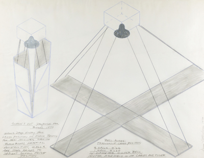 DENNIS OPPENHEIM Scool's out, proposal for Basel, 1979 tecnica mista su carta cm. 96,2x126 firmato e datato in basso a destra Scool's out, proposal for Basel, 1979 mixed media on paper cm. 96,2x126 signed and dated on the bottom right