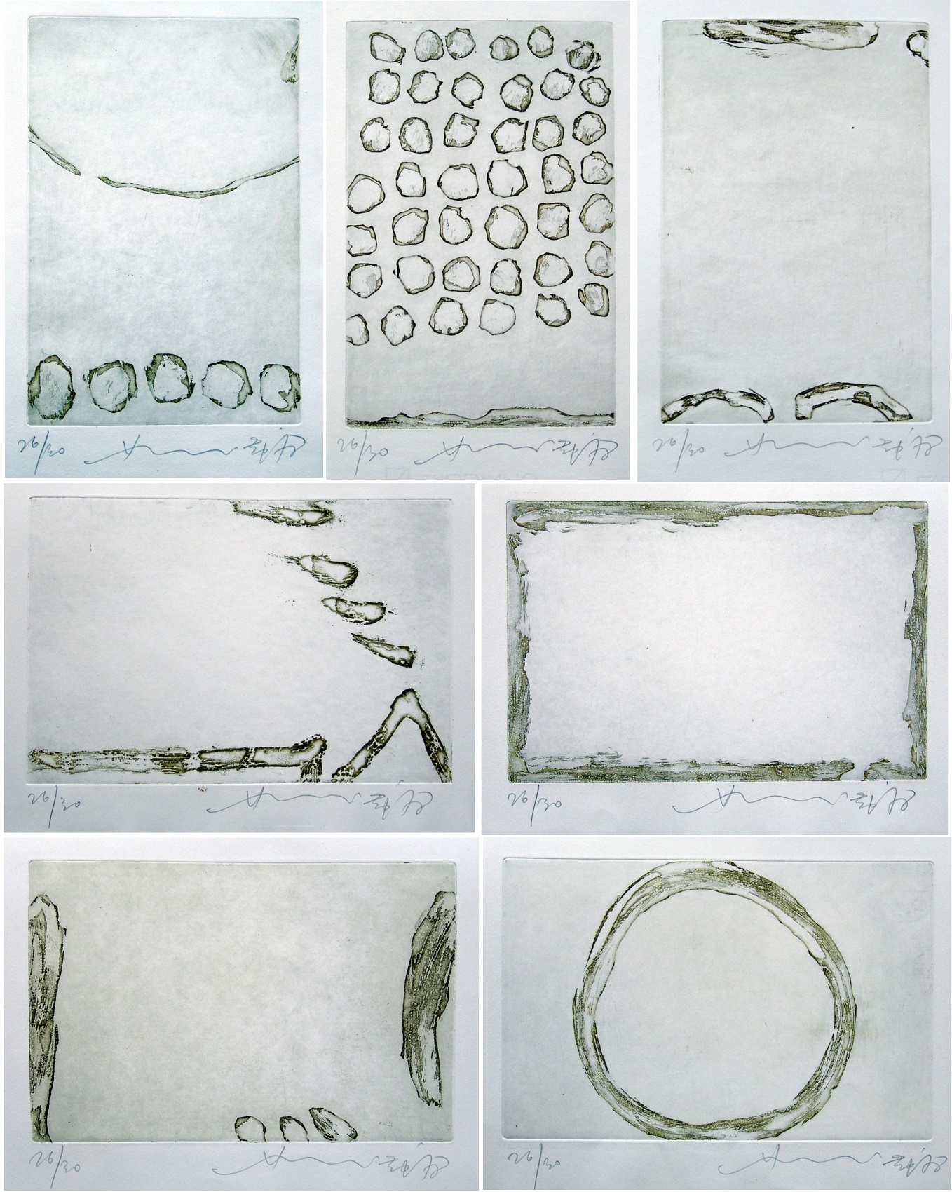 es. 26/30, n. 7 acqueforti firmate a mano dall'artista in box in legno, edizione La Tecnica del Ragno di Macerata