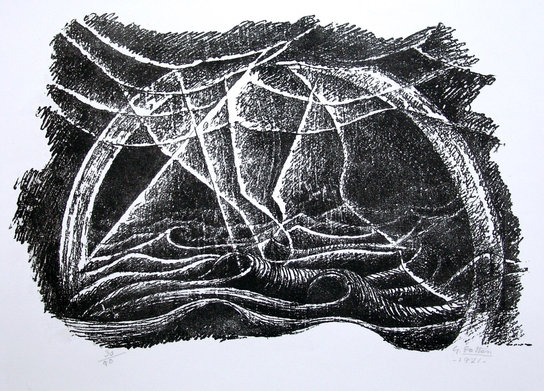 es. 30/90, firma dell'artista in basso a destra e timbro La Pergola di Pesaro in basso a sinistra