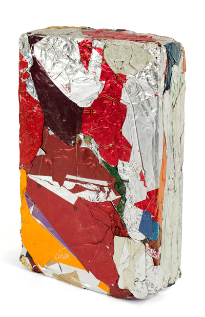 CESAR Compressione alluminio pressato, cm. 31x26x10 firmato in basso a sinistra sul fronte autentica su fotografia dell'Atelier Cesar - Paris Compressione pressed aluminum, cm. 31x26x10 signed in the bottom left in front photo certificate from Atelier Cesar Paris
