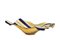 composta dall'unione di canne, fili e fasce di vetro lattimo, blu e cristallo; doratura sul lato inferiore.