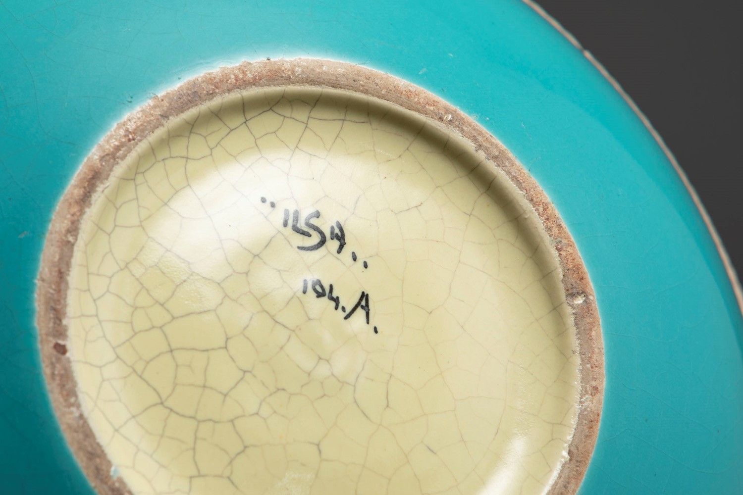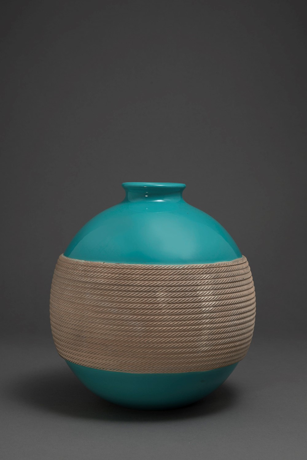 in terracotta maiolicata decorato con motivo in finta corda e smalto azzurro.