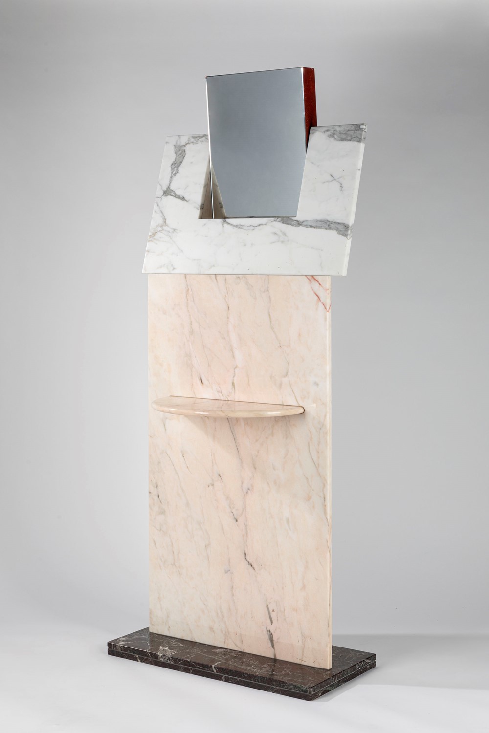 in marmo rosa Portogallo, bianco Carrara e rosso Levanto.