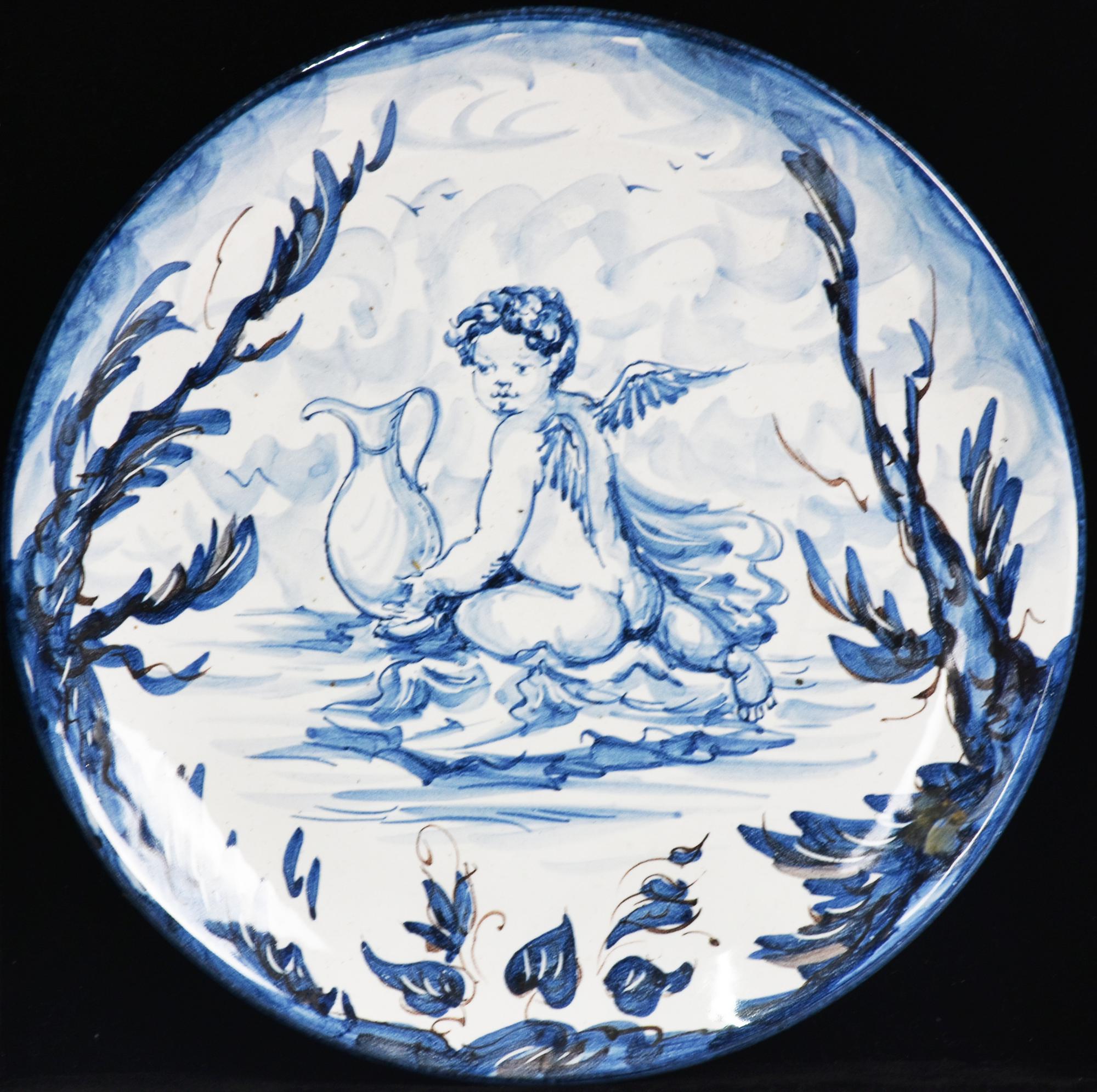 con decorazioni nei toni del blu cobalto e dell'azzurro raffigurante un putto alato