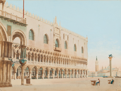 CARLO PONTI (1820 - 1893) Venezia 1860 circa stampa all'albumina acquarellata a mano vintage 27x35 cm timbro a secco Carlo Ponti Venezia Venezia about 1860 vintage watercolor hand albumin print 27x35 cm Carlo Ponti's embossing stamp Venezia
