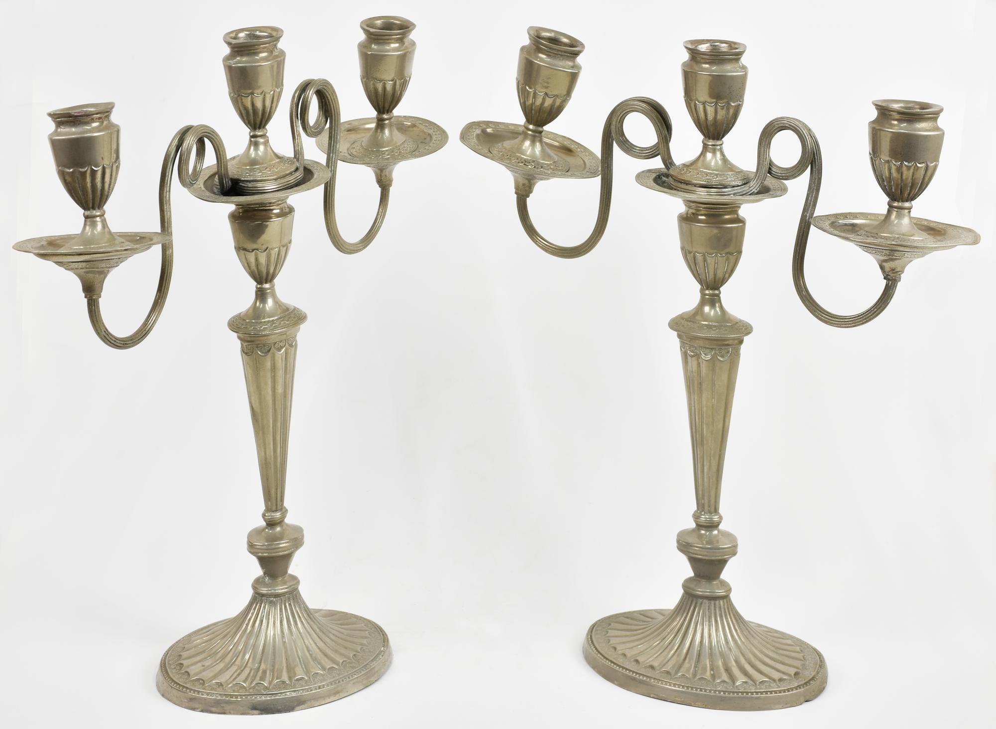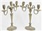COPPIA DI CANDELIERI in peltro argentato a tre fiamme o singolo h cm 37...