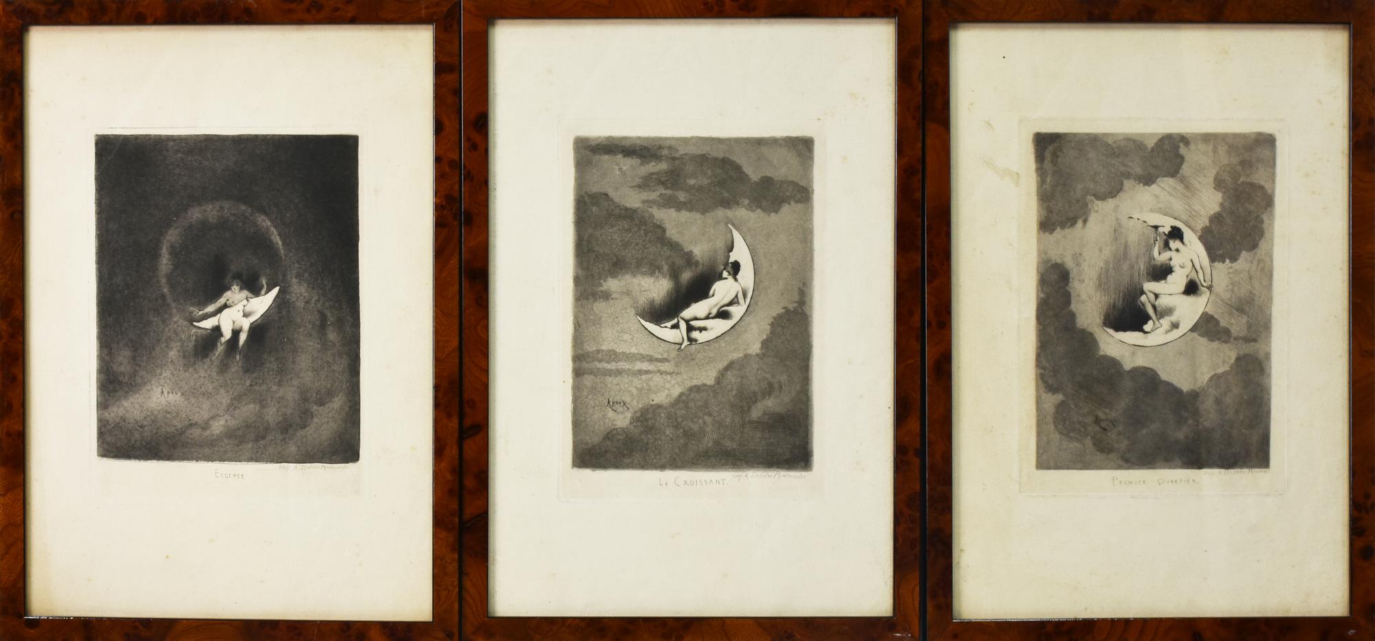 Joseph Apoux LOTTO DI TRE INCISIONI raffiguranti le fasi della Luna incisioni...