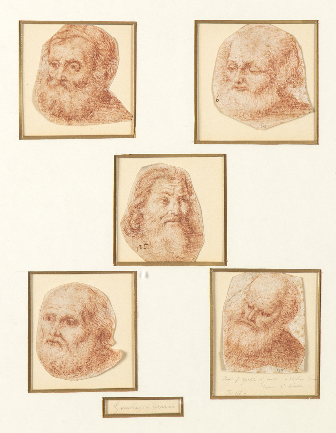 Studio di cinque teste di carattere montate su passepartout