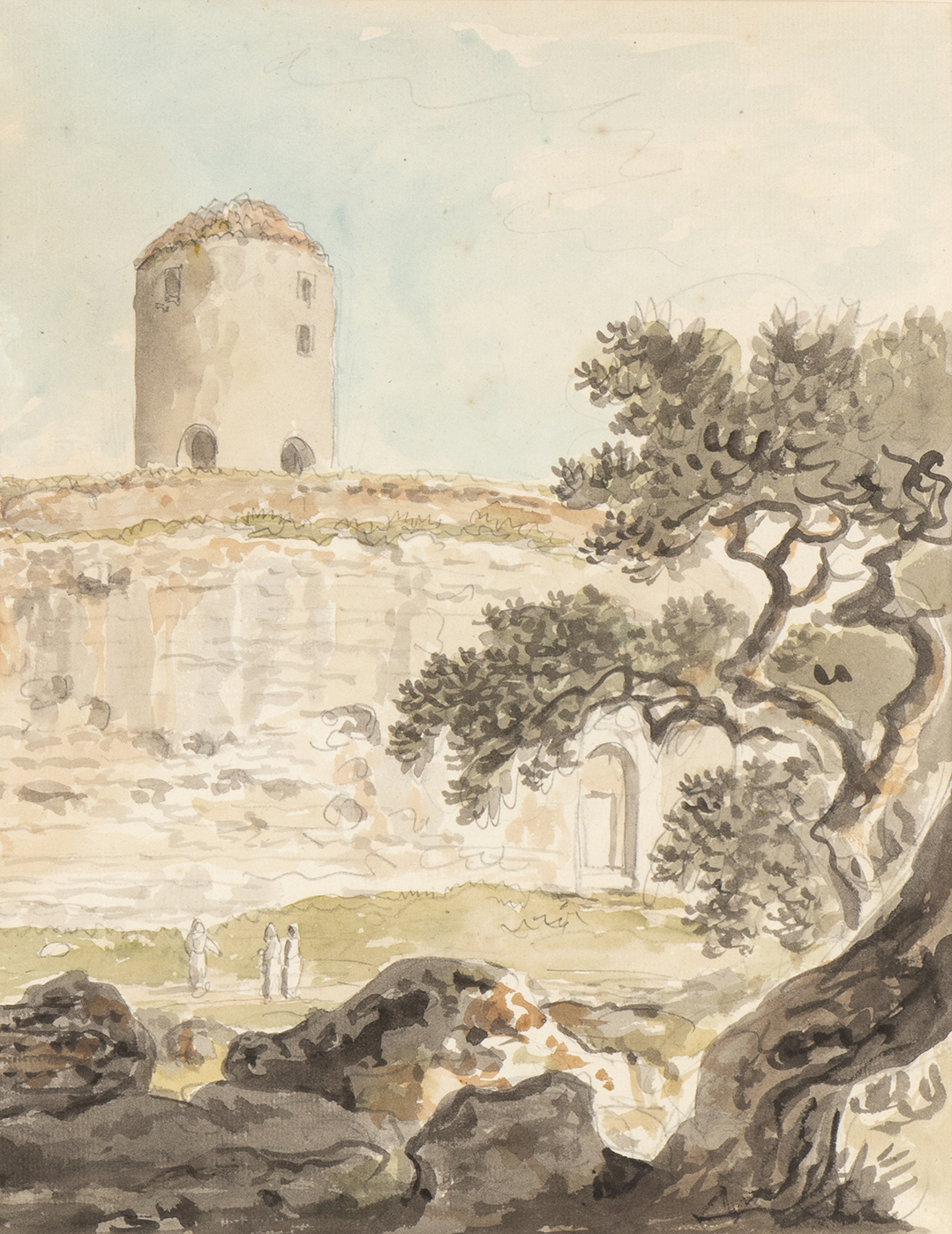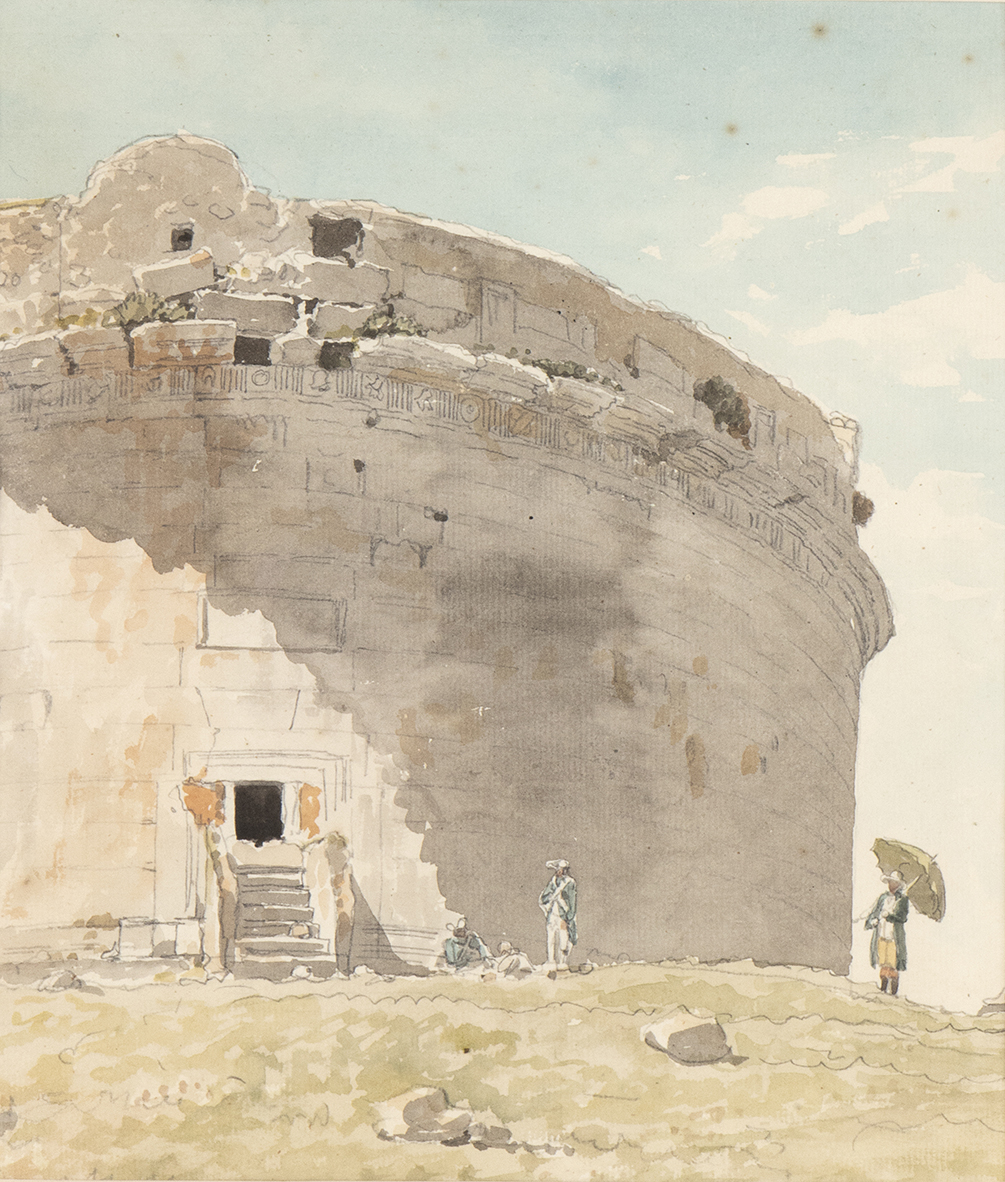BIBLIOGRAFIA DI RIFERIMENTO: P.A. De Rosa - B. Jatta, La Via Appia nei disegni di Carlo Labruzzi alla Biblioteca Apostolica Vaticana, Città del Vaticano, Biblioteca Apostolica Vaticana, 2013, TAV. 188, pp. 420-421 (di questa veduta sono pubblicate due versioni in seppia, oggi conservate presso la Biblioteca Apostolica Vaticana e l'Accademia di San Luca, più una copia policroma presso la Biblioteca Apostolica Vaticana).