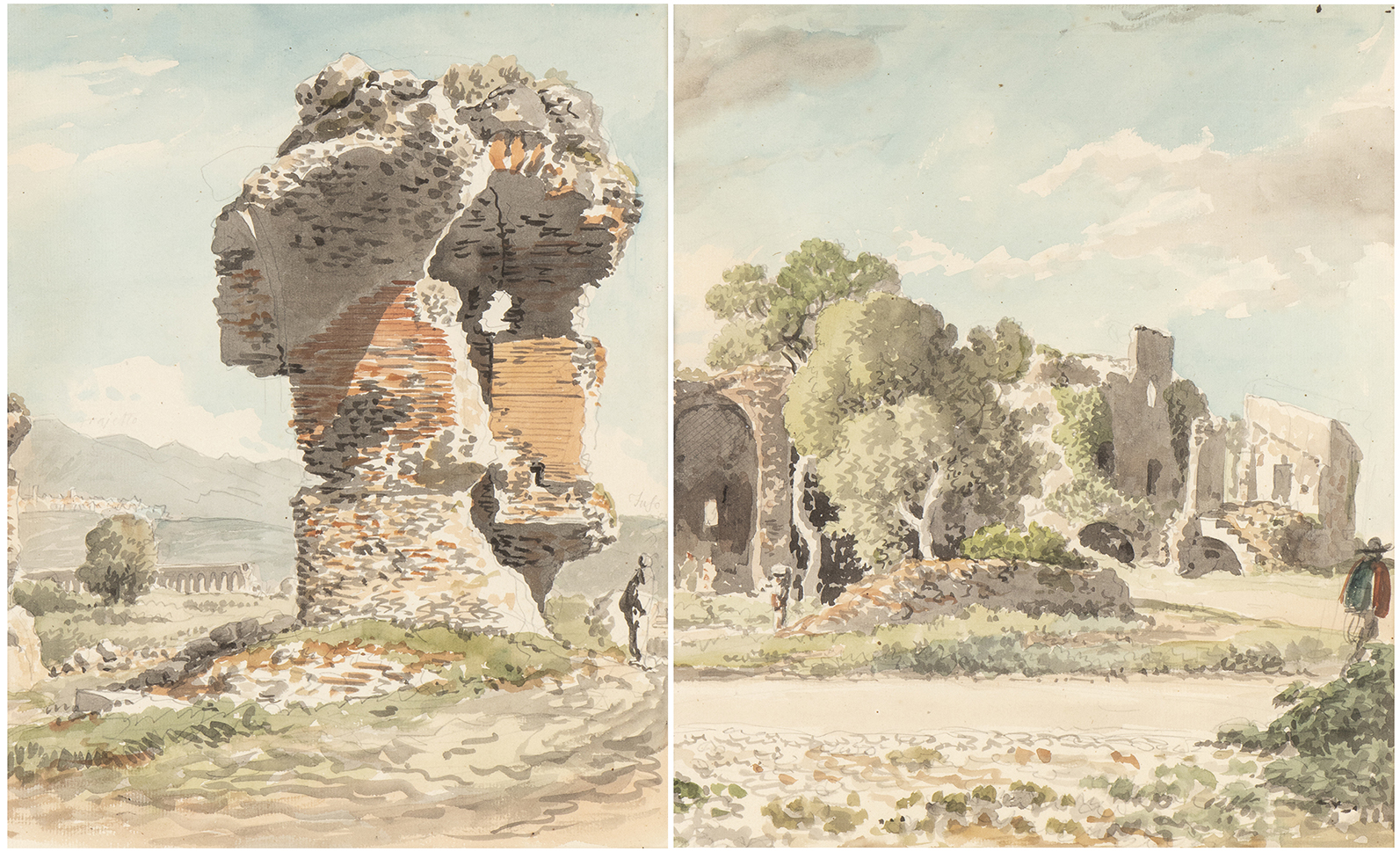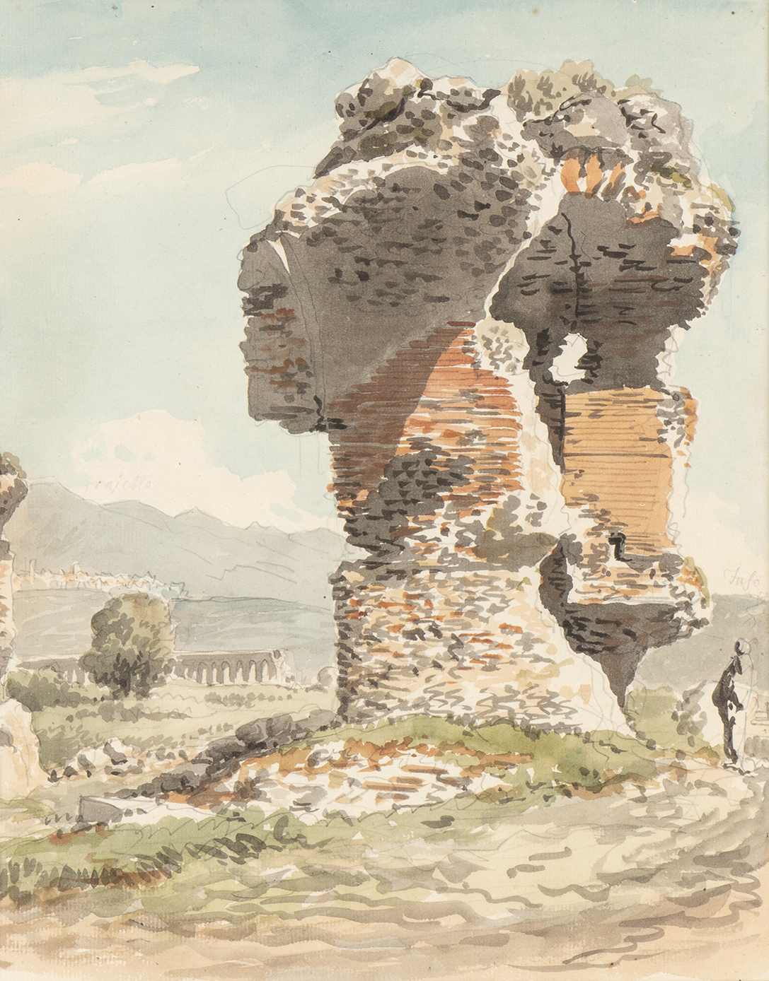 BIBLIOGRAFIA DI RIFERIMENTO: P.A. De Rosa - B. Jatta, La Via Appia nei disegni di Carlo Labruzzi alla Biblioteca Apostolica Vaticana, Città del Vaticano, Biblioteca Apostolica Vaticana, 2013, TAV. 194, p. 428 -429 (di questa veduta sono pubblicate tre versioni in seppia conservate presso la Biblioteca Apostolica Vaticana, l'Accademia di San Luca e Casa Goethe, più una copia policroma presso la Biblioteca Apostolica Vaticana)