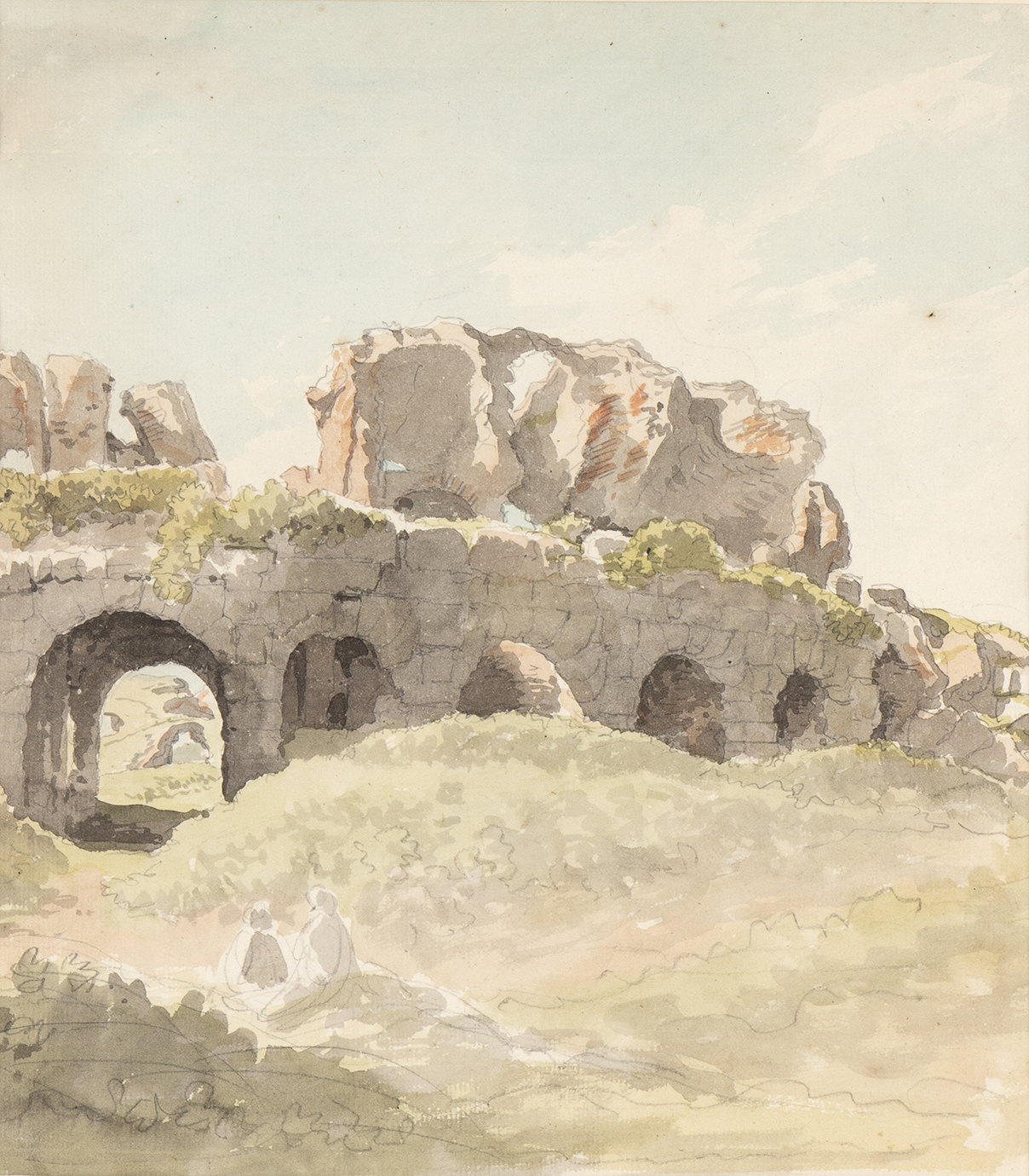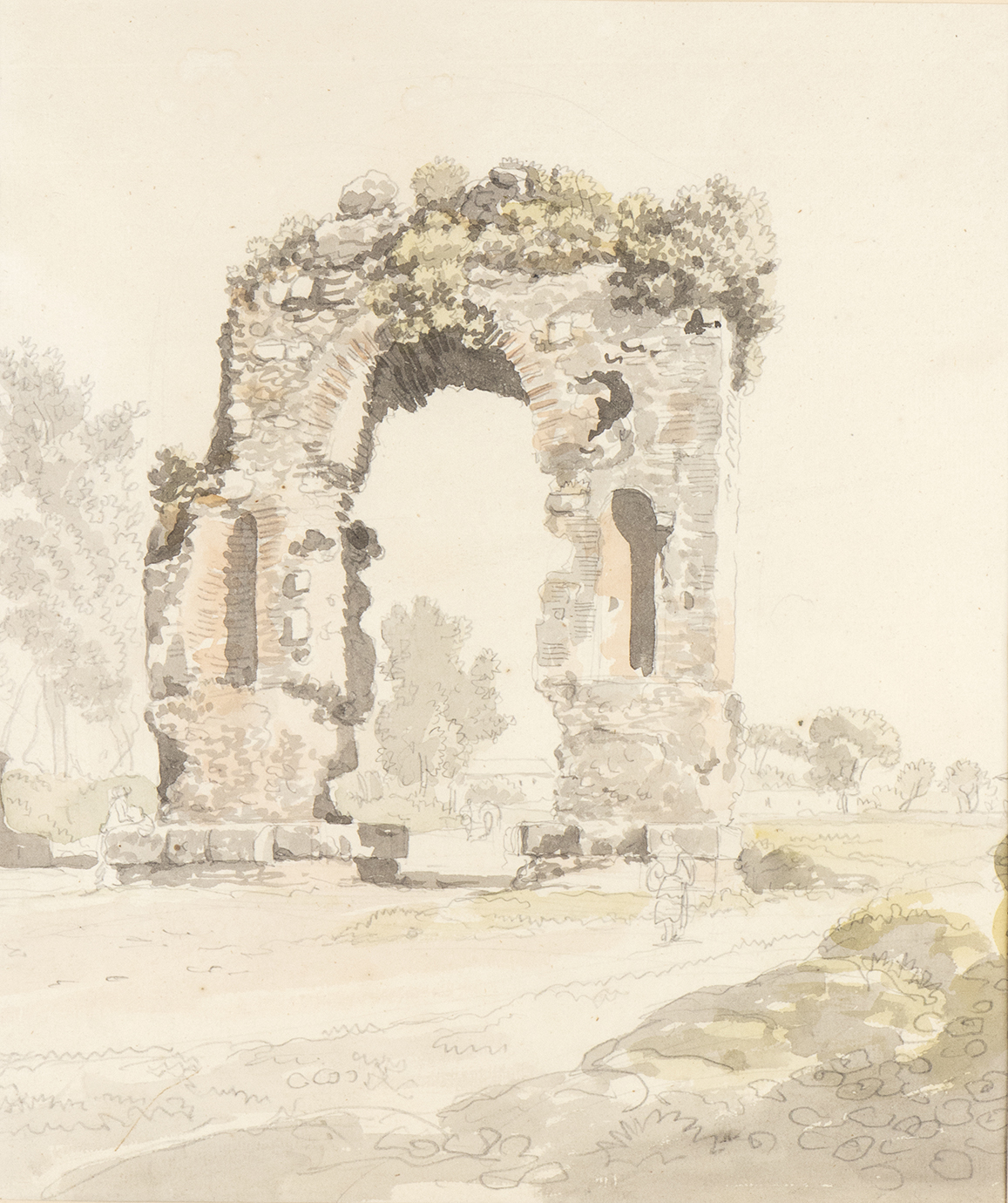 BIBLIOGRAFIA DI RIFERIMENTO: P.A. De Rosa - B. Jatta, La Via Appia nei disegni di Carlo Labruzzi alla Biblioteca Apostolica Vaticana, Città del Vaticano, Biblioteca Apostolica Vaticana, 2013, TAV. 199, p. 435 (di questa veduta sono pubblicate due versioni in seppia conservate presso la Biblioteca Apostolica Vaticana e l'Accademia di San Luca).