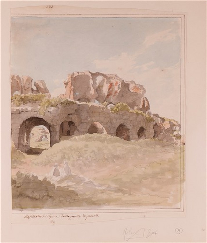 In basso al centro antica iscrizione probabilmente autografa: "ANFITEATRO DI CAPUA DALLA PORTA DI PONENTE / 24". In alto iscrizione a penna: "205".