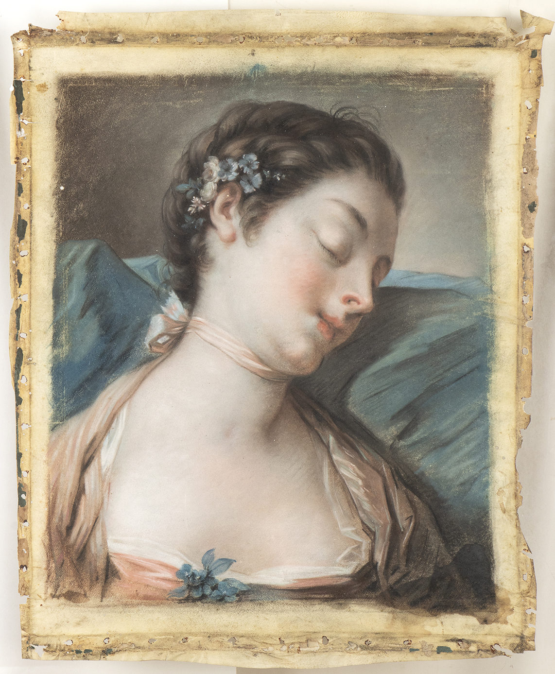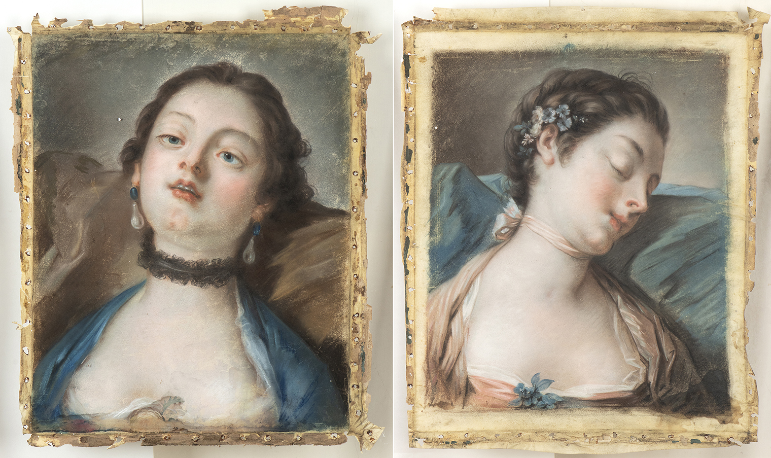 A. Ritratto di fanciulla con perle - B. Ritratto di fanciulla dormiente. Coppia di pastelli