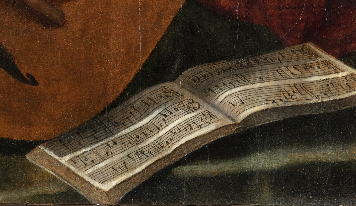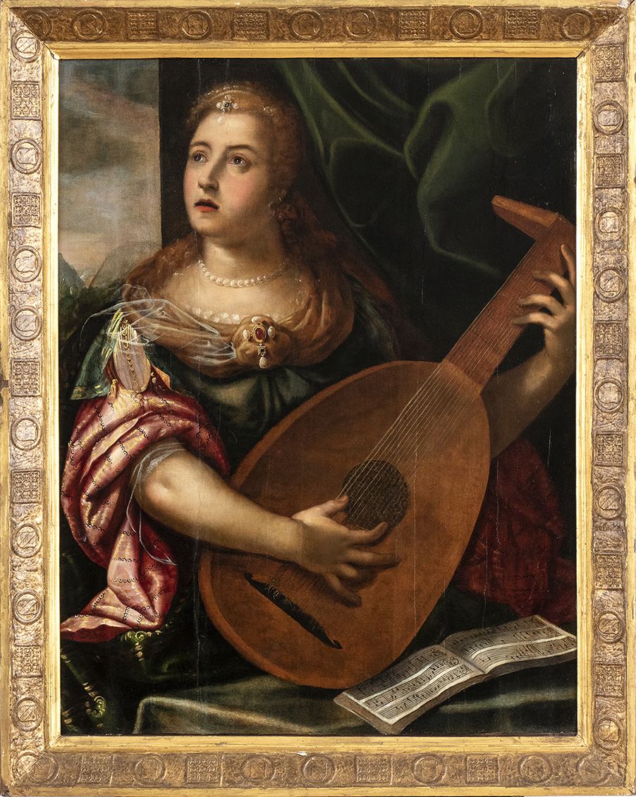 Il bel dipinto su tavola è imperniato su una giovane gentildonna malinconicamente immersa in pensieri lontani subito dopo aver ultimato sul suo liuto l’esecuzione del brano sullo spartito. L'opera va chiaramente inquadrata all’interno del gusto lagunare, d'impronta tizianesco-veronesiana, sviluppatosi nella seconda metà del XVI secolo e diffusosi rapidamente in Veneto e in Lombardia. Oltre all'argomentazione di carattere stilistico, anche il soggetto supporta tale riferimento, sia per lo strumento scelto, di particolare successo nel panorama musicale veneziano, sia per i molteplici confronti con opere di soggetto analogo di artisti attivi in area lombardo-veneta: basti ricordare il Concerto di Simone Peterzano (Schwerin Staatliches Museum), e soprattutto il Ritratto di giovane suonatrice di liuto di Parrasio Micheli, oggi al Museum of Fine Art di Houston, Texas, di cui il nostro dipinto costituisce una raffinata replica con importanti varianti, quali il volto della fanciulla rivolto verso l’alto e la presenza del pentagramma di fronte allo strumento.