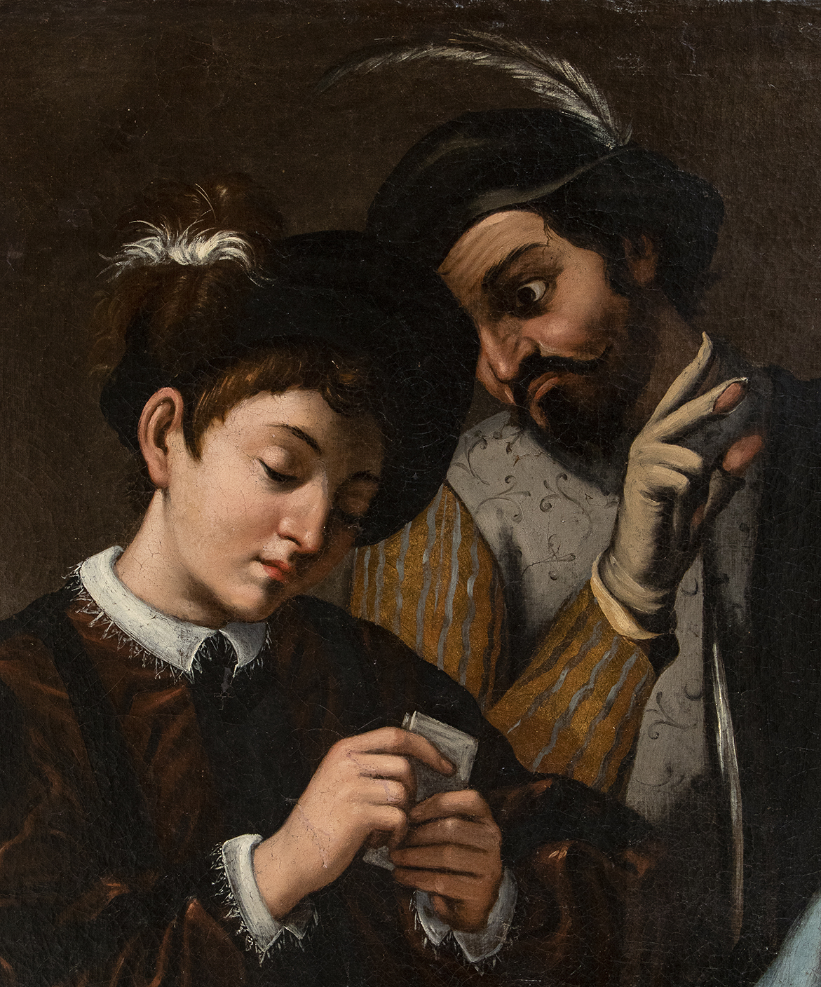 Il dipinto è una replica coeva di notevole qualità del capolavoro giovanile di Caravaggio universalmente noto come "I bari", oggi conservato presso il Kimbell Art Museum di Fort Worth.