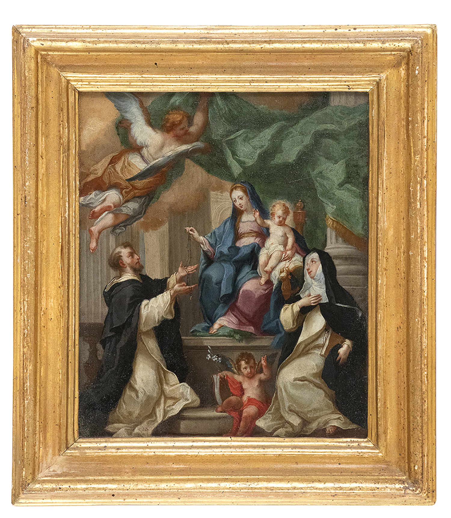 La Madonna con Bambino in trono conferisce il rosario a San Domenico alla presenza di Santa Caterina da Siena (Madonna del Rosario)