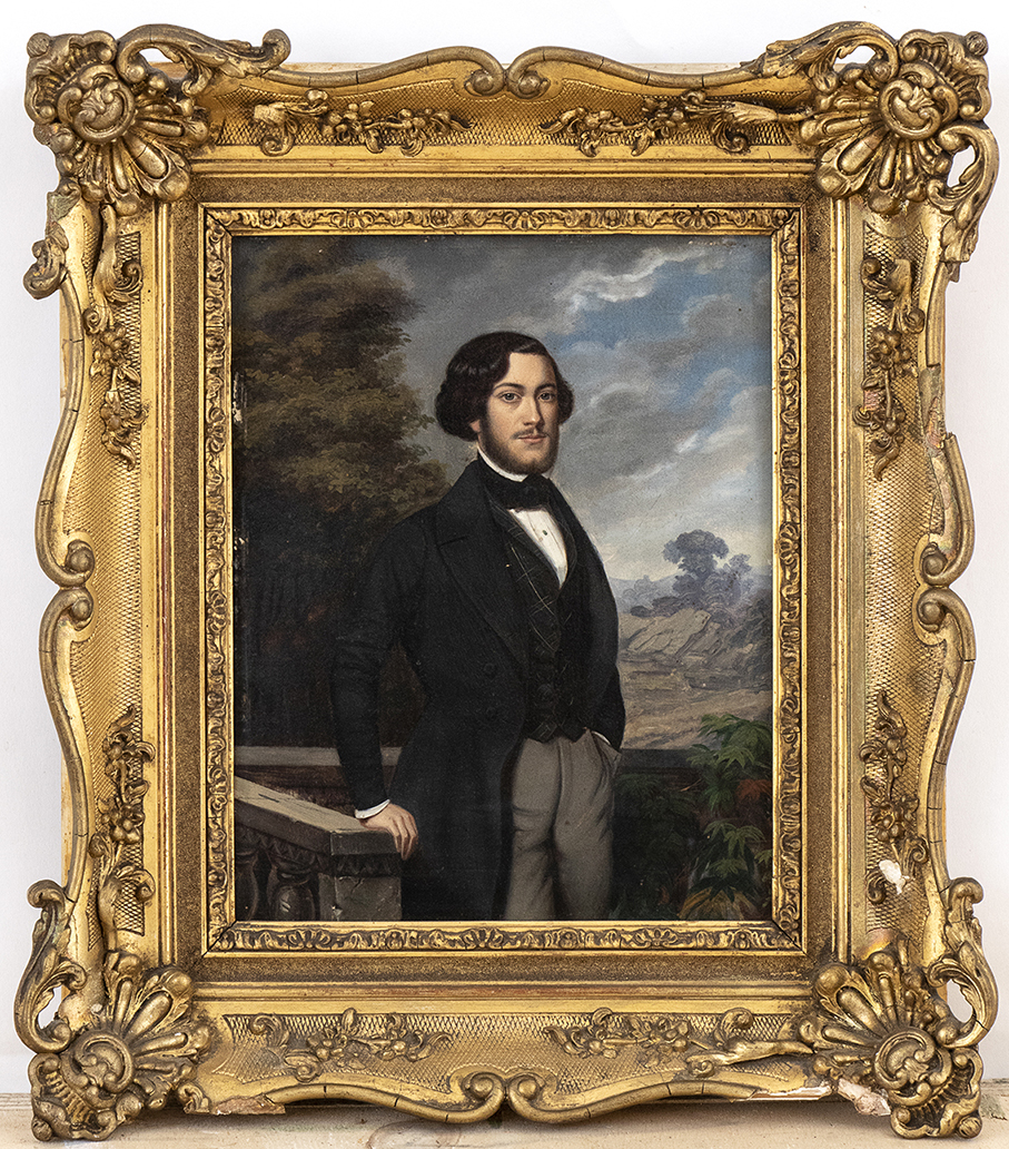 Ritratto di giovane gentiluomo appoggiato alla balaustra di un giardino