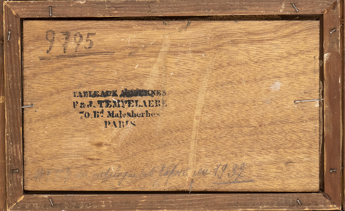 Al retro reca un numero di invenatrio: "9795". Un timbro di galleria parigina e un'iscrizione a matita con data: "1939".
