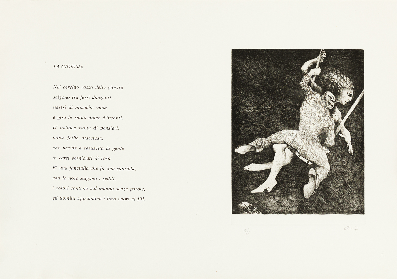 Cartella contenente 4 litografie di Birga, Calabria, Giuffra e Vespignani