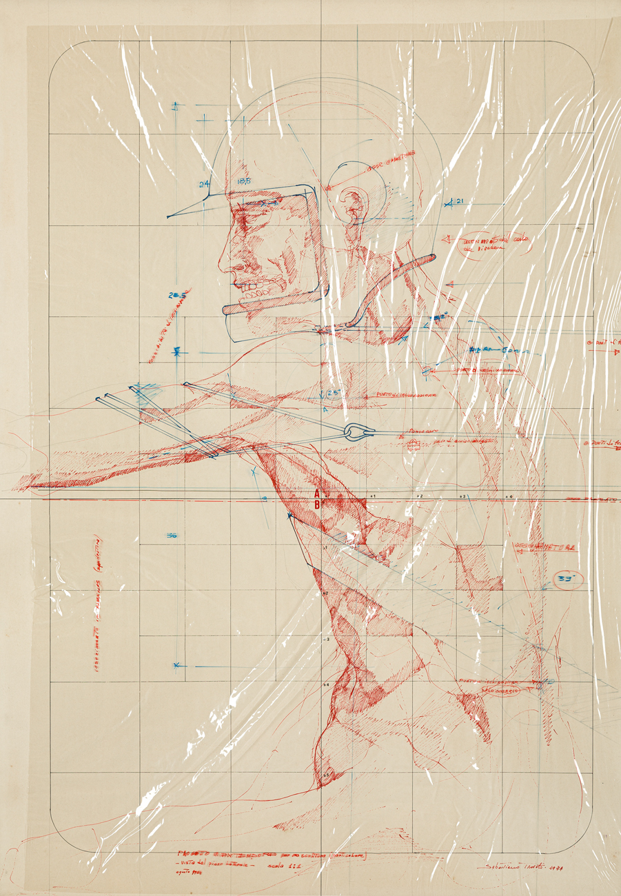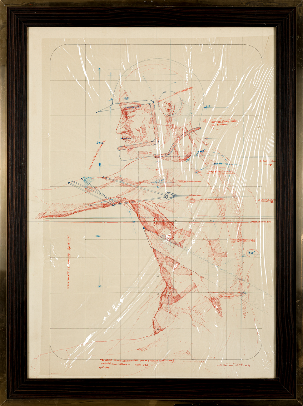 SEBASTIANO TROVATO (1948) - Progetto in extempore per una scultura (particolare) vista dal piano laterale. Scala 1:1, 1974