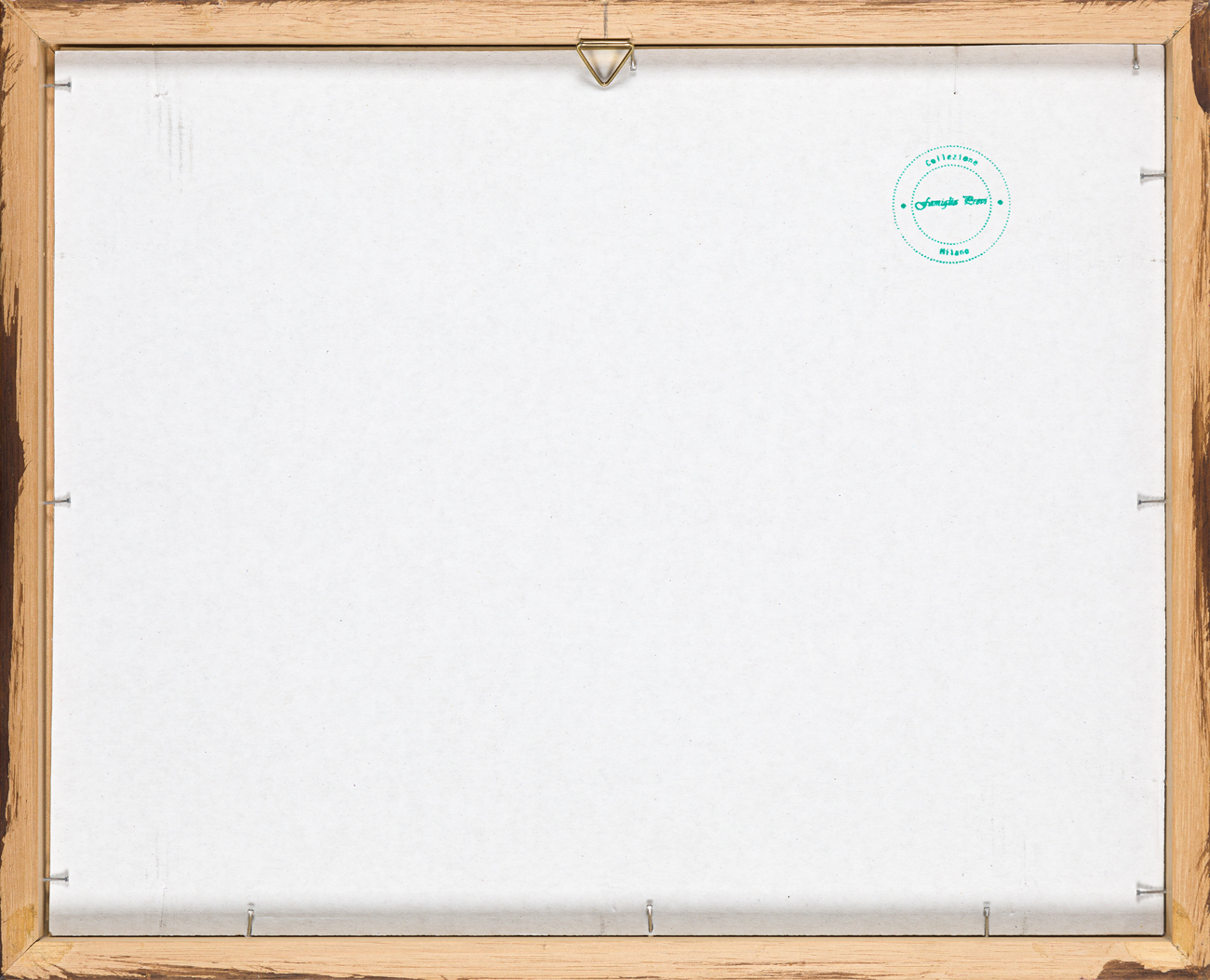 Timbro della Collezione Famiglia Previ (MI) al retro del cartone protettivo