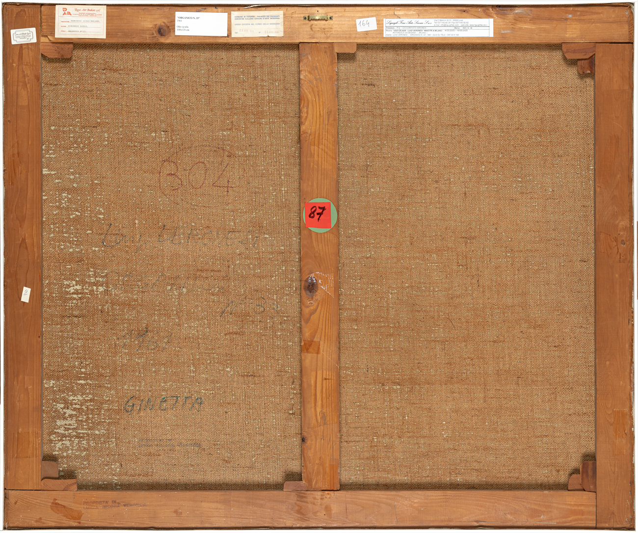 Etichetta dei Trasporti Rossi Art Broker (MI) al retro