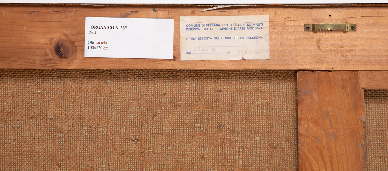 Etichetta e timbro del Comune di Ferrara - Palazzo dei Diamanti - Direzione Gallerie Civiche d'Arte Moderna al retro
