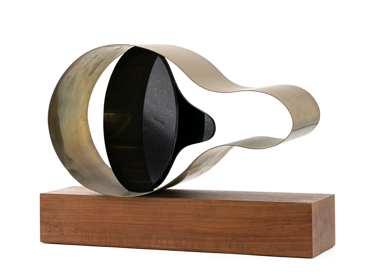 Scultura in ottone e acrilico nero su base in legno