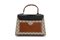 in tessuto monogrammato, inserti in pelle bicolore, chiusura in metallo dorato, con tracolla staccabile, cm 28, con sacchetto e scatola, nuova mai usata.