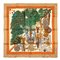 in seta stampata, su fondo color crema, bordo color arancio e beige scuro, Annie Faivre, con scatola.