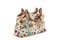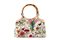 in tessuto su fondo color bianco, dettagli in pelle, doppi manici in bamboo, cm 36 (lievi difetti).