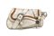 a tracolla in pelle di pitone, color argento, interno in pelle, dettagli in metallo brunito, charmes a forma di chiavi e medaglie, cm 36 (difetti).