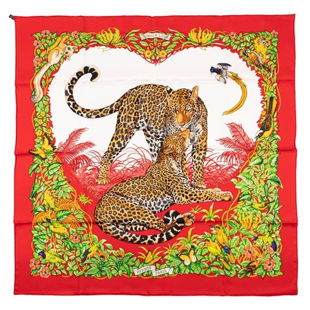 in seta su fondo color bianco, bordo color rosso, Robert Dallet, con scatola.