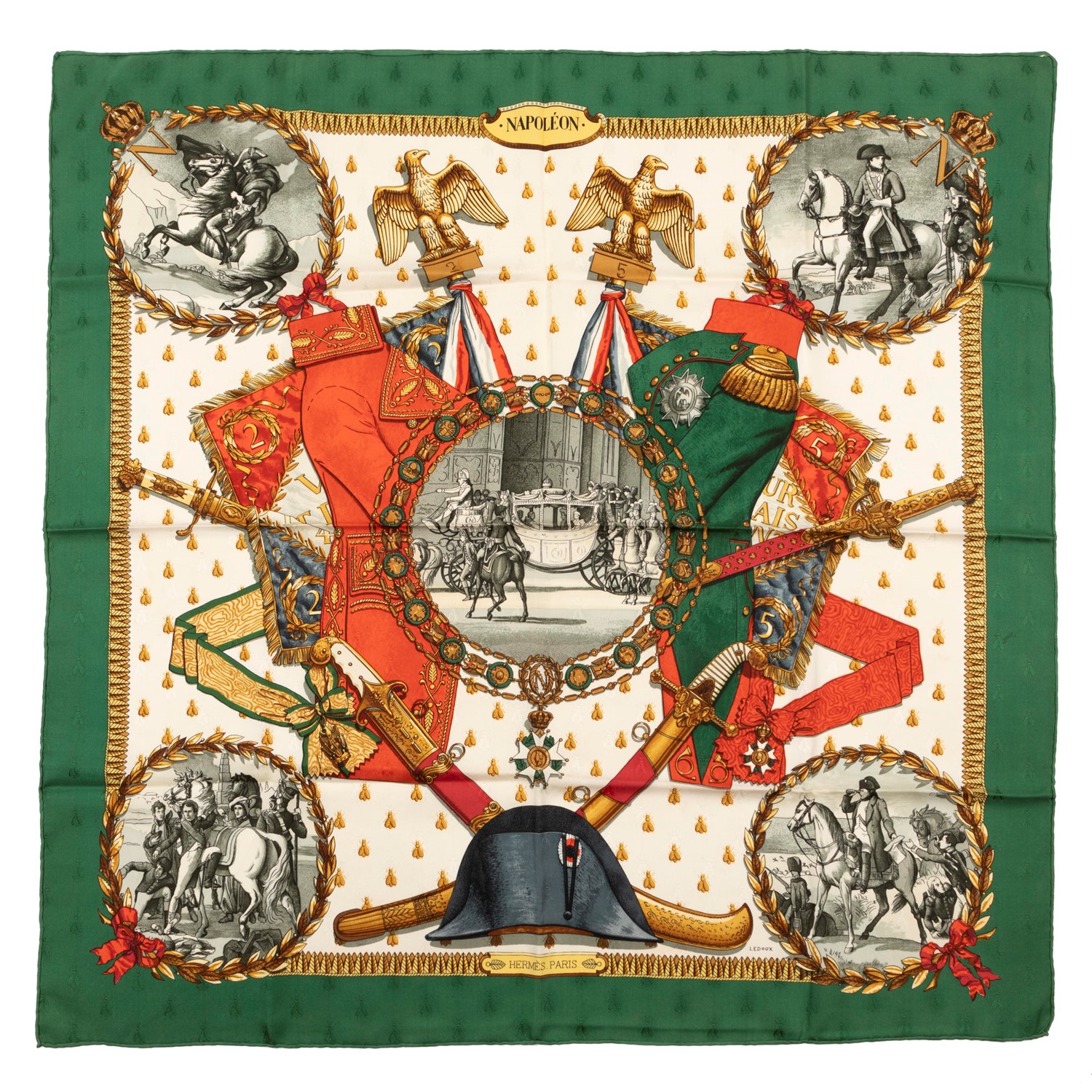 in seta su fondo color panna, con api, bordo color verde, Philippe Ledoux (lievi difetti).