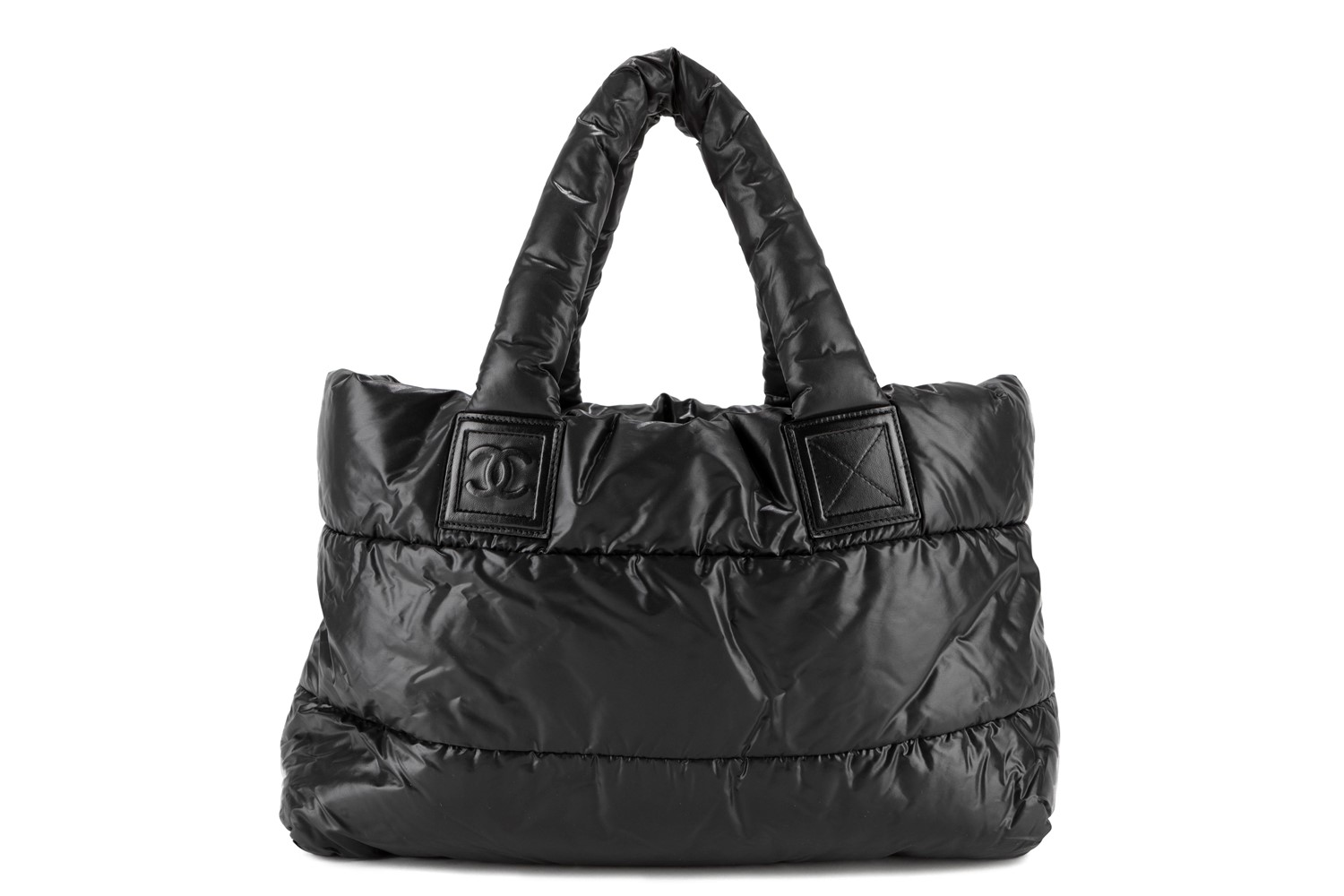 in tessuto tecnico imbottito doubleface, con doppi manici color nero, interno color bordeaux matelassé, cm 40.