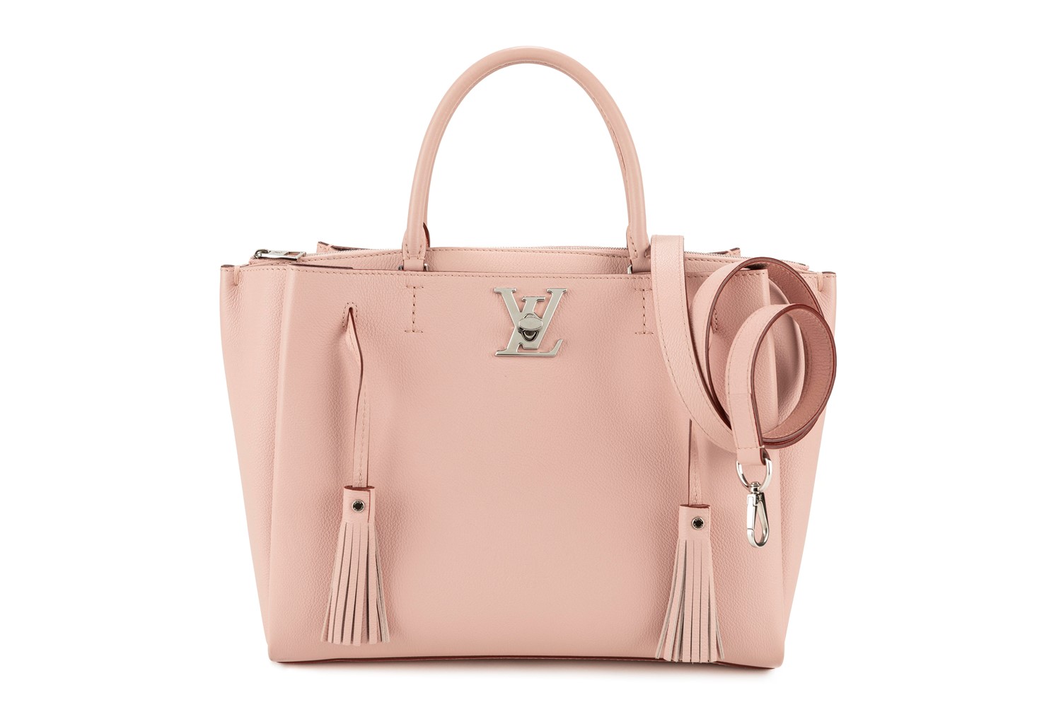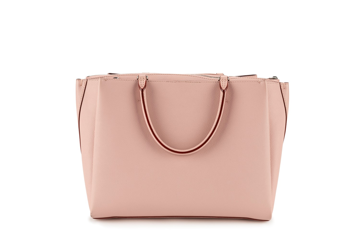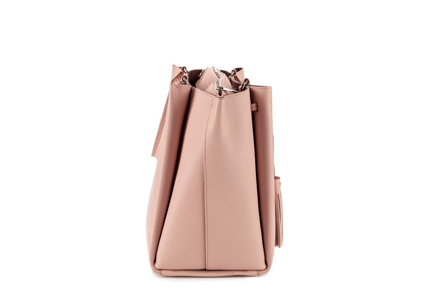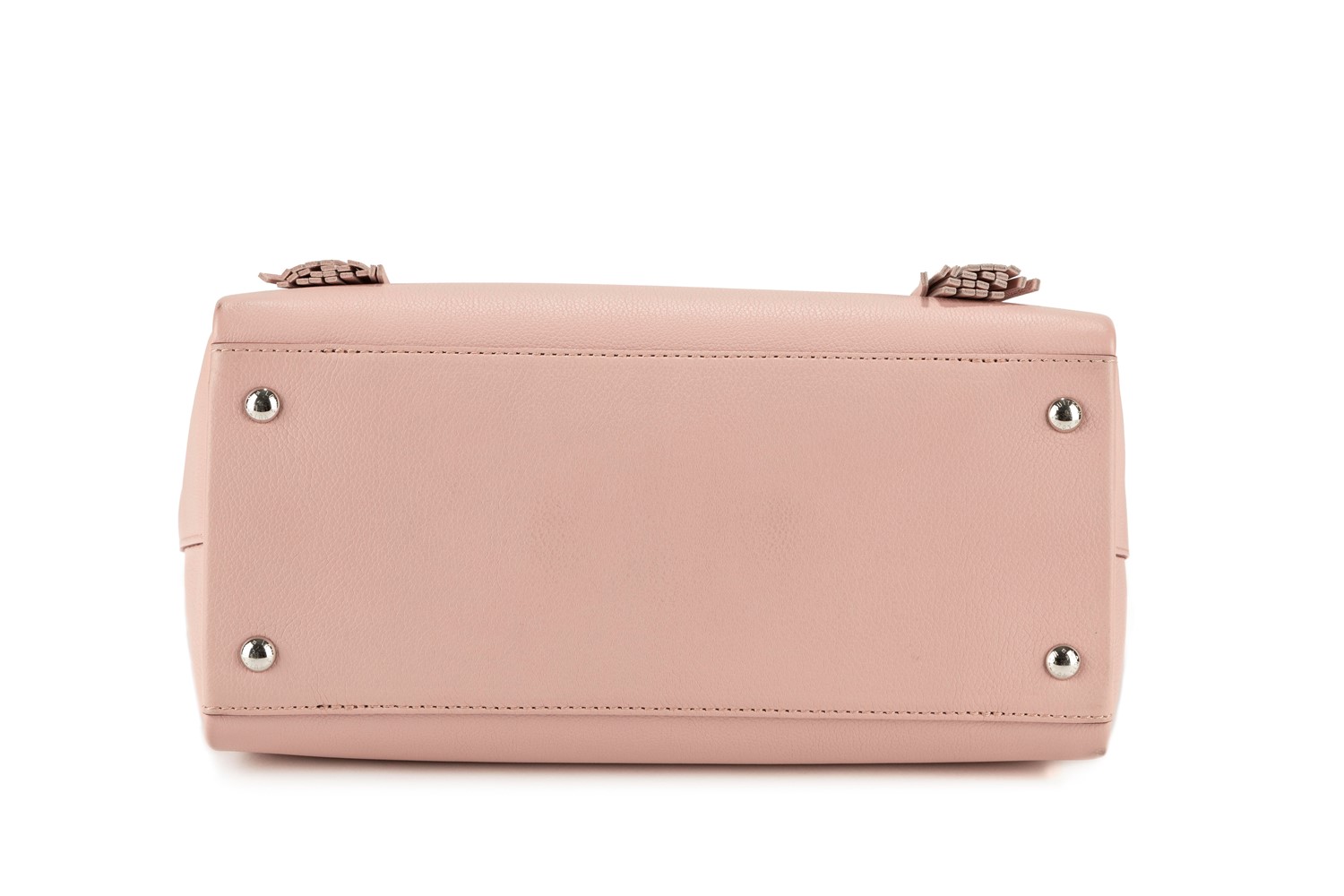 color rosa cipria, doppi manici, dettagli in metallo, tre scompartimenti interni, con tracolla, cm 30 con sacchetto (lievissimi difetti).