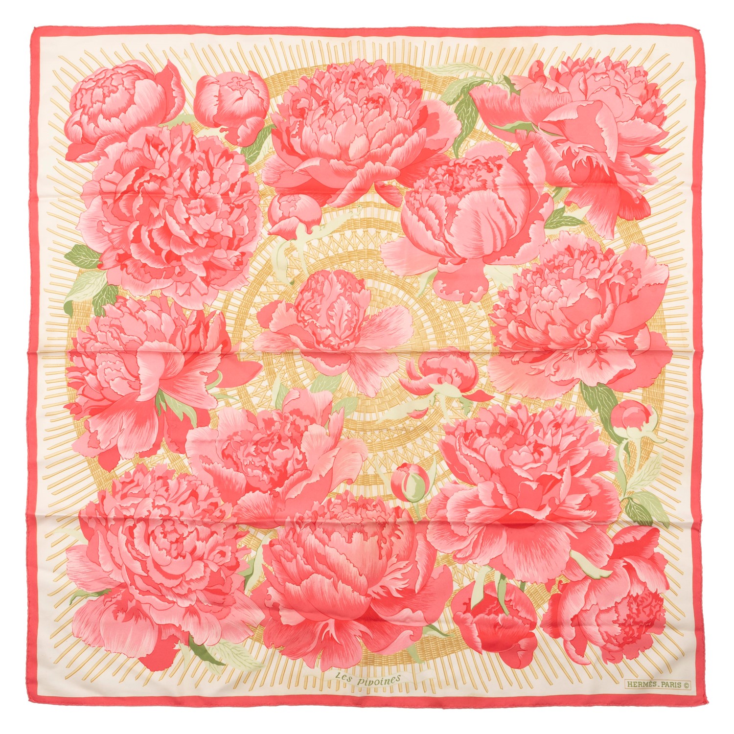 in seta su fondo color panna, bordo rosa, Christiane Vauzelles (difetti).