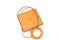 in pelle da collo con collana color arancione, dm cm 8, con sacchetto e scatola.