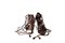 in cuoio color marrone, anelli e stringhe alla caviglia con finali in bamboo, tacco cm 12, misura 35 1/2, con sacchetti e scatola (lievi difetti).