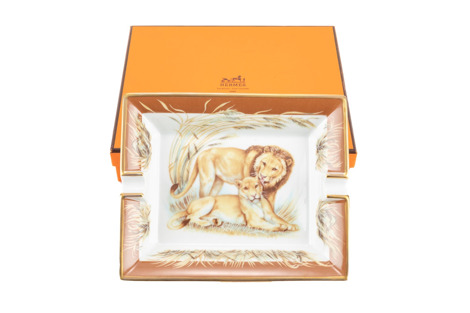 in porcellana bianca con decoro leoni, cm 20 x 16, con scatola.
