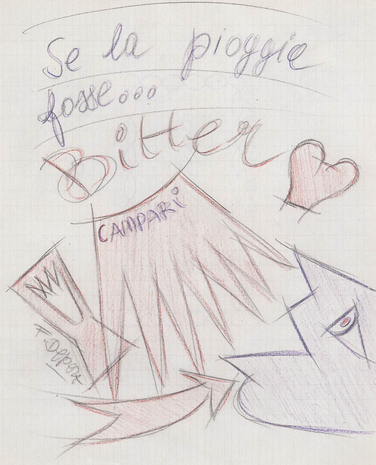 Fortunato Depero (Fondo 1892 – Rovereto 1960) “Se la pioggia fosse…Bitter Campari”, 1926/27;Matite colorate su carta, 27 x 22 cm