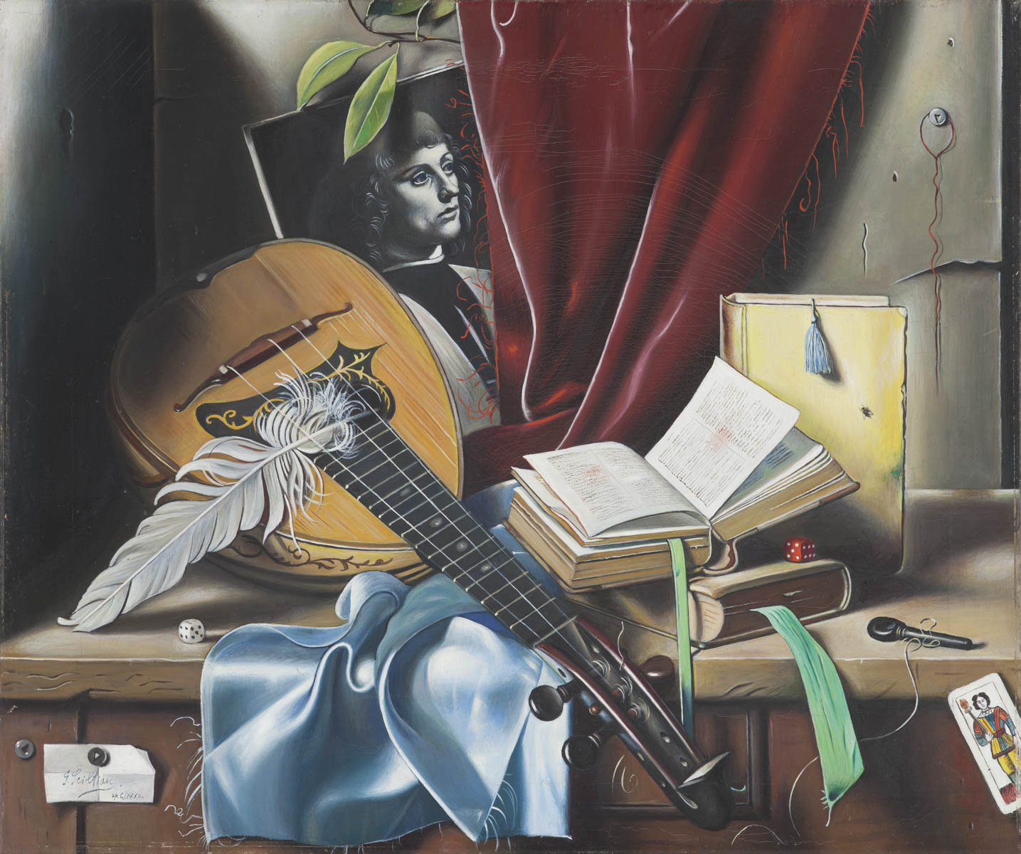 Gregorio Sciltian (Nakhichevan-na-Donu 1900 – Rom/Roma, 1985) Natura morta con mandolino, 1932;Olio su tela, 50 x 59,5 cm, al retro timbro illegibile ( Russo….),