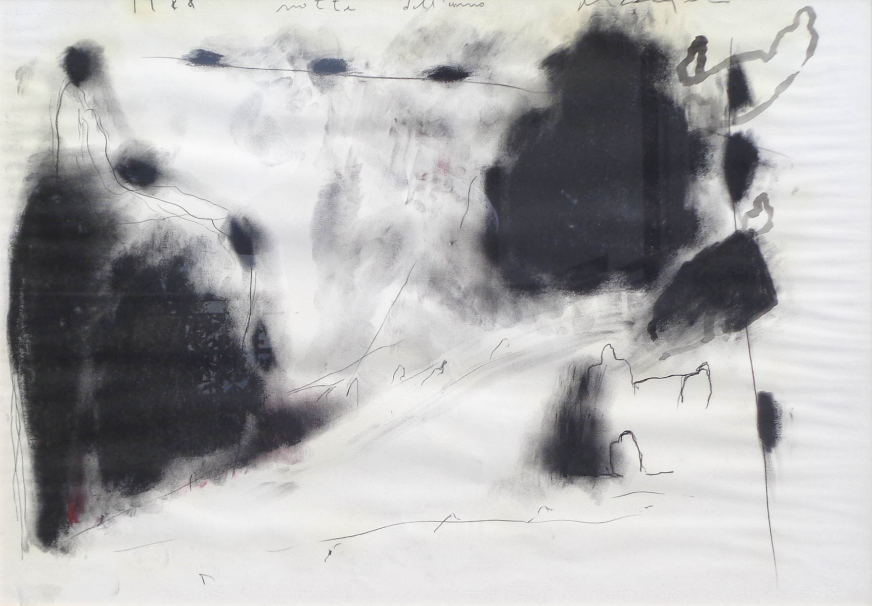 Arcangelo (Avellino 1956) Notte dell’uomo, 1988;Carboni su carta, 70 x 100 cm, al retro dedica ad personam