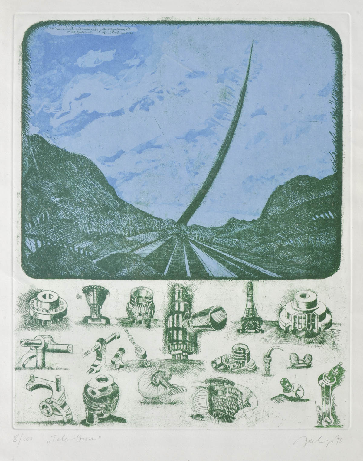 Othmar Zechyr (Linz 1938 – 1996) Tele-Vision, 1973;Acquaforte a colori, 48,8 x 39,4 cm