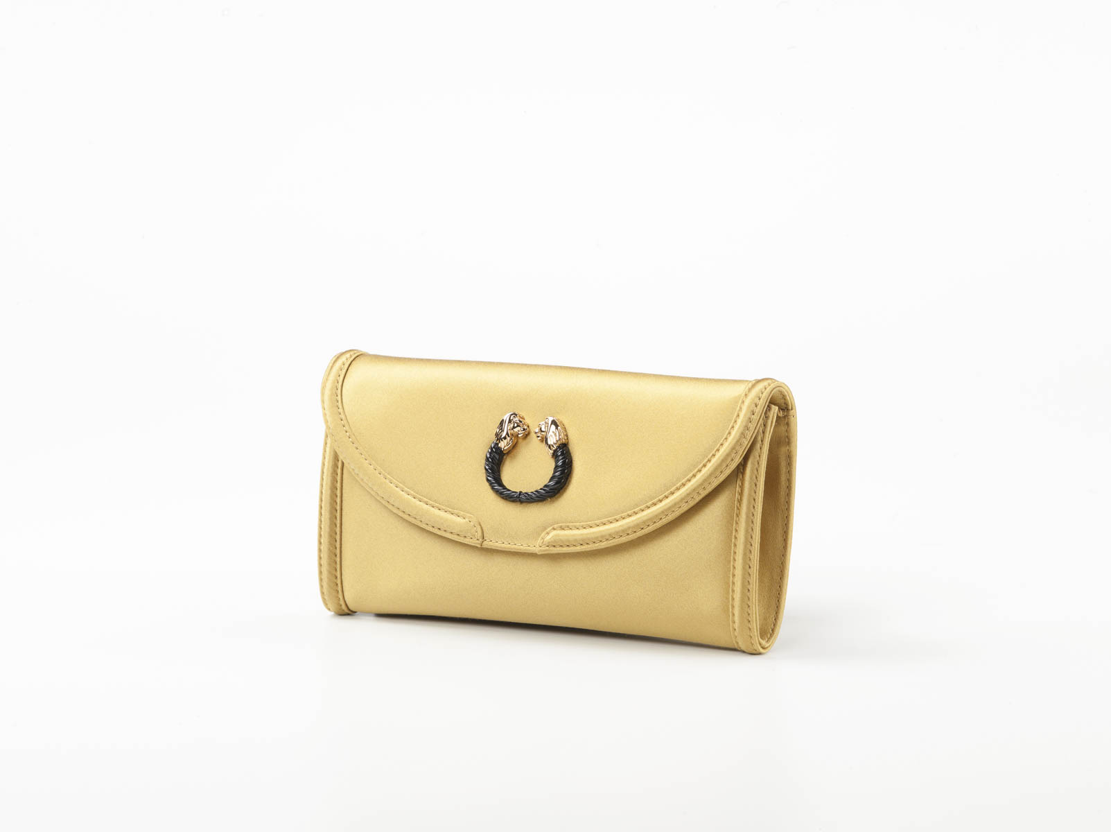 Bulgari Pochette da sera;Tessuto giallo oro, 11,5 x 21,5 cm, in ottimo stato, custodia e scatola originale, con certificato