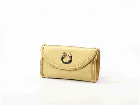 Bulgari Pochette da sera;Tessuto giallo oro, 11,5 x 21,5 cm, in ottimo stato,...