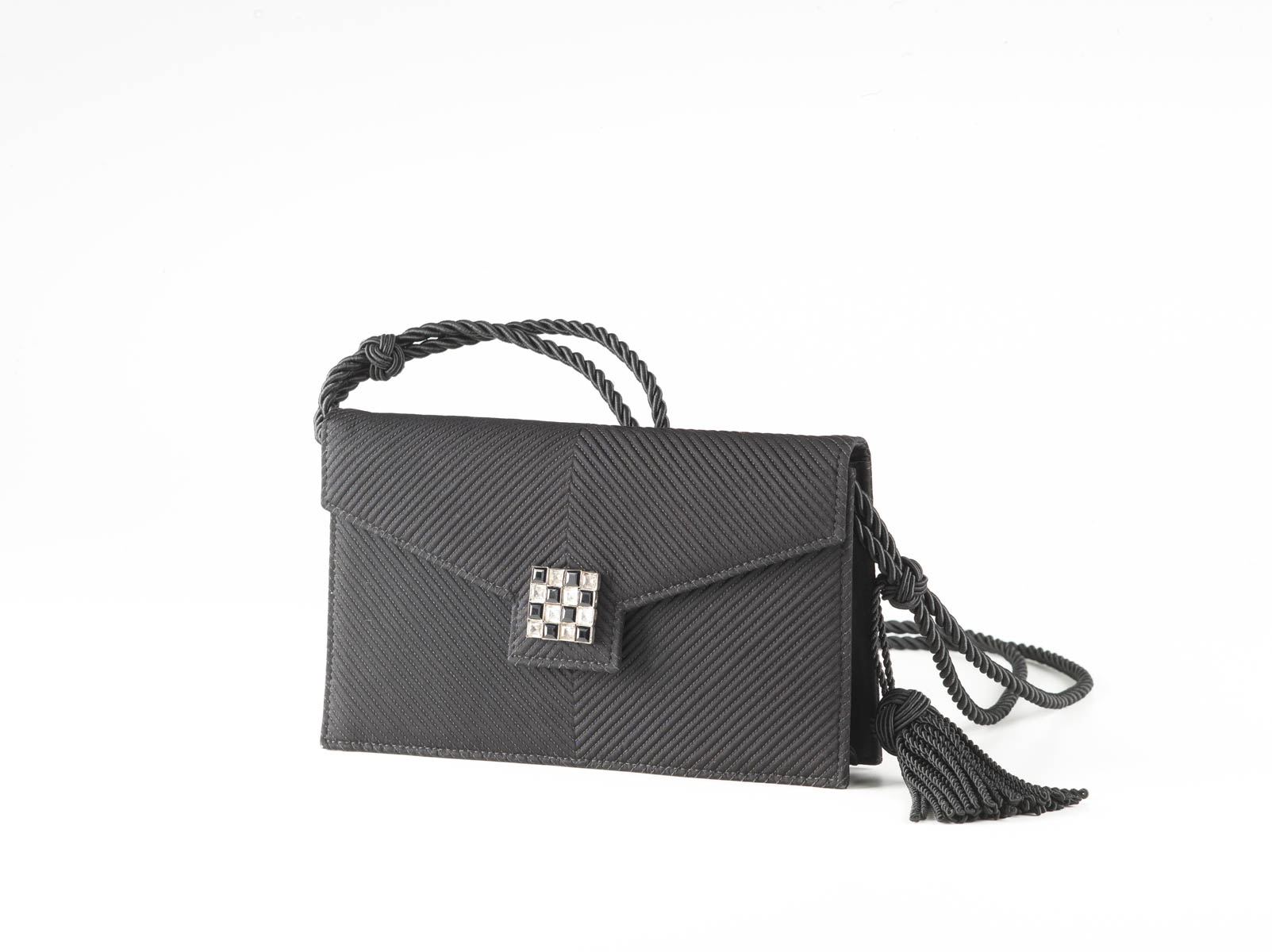 Fendi Pochette;Tessuto nero con nervature trasversali a mano, fermaglio argentato